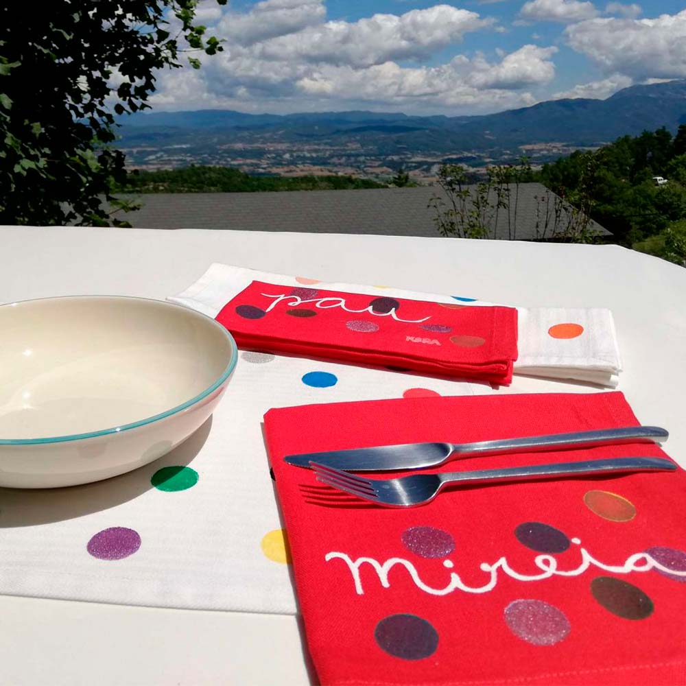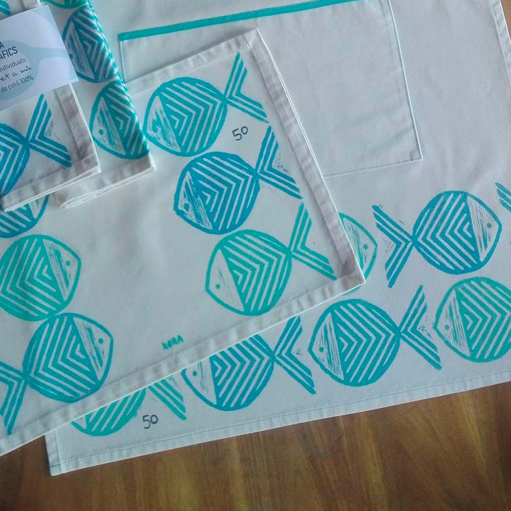 Pots encarregar-me des d’un davantal o un camí de taula, fins a coixins, individuals amb tovallons, bosses o projectes més grans com un canvi complet de decoració per a casa teva.