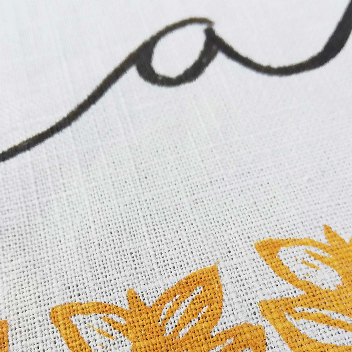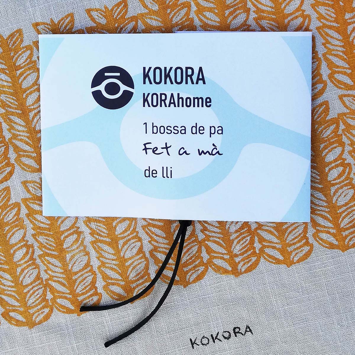 Cada peça està estampada a mà de manera totalment artesanal amb tintes ecològiques sobre teixits orgànics com el lli i el cotó, fent que cada bossa sigui única, viva i plena de caràcter.