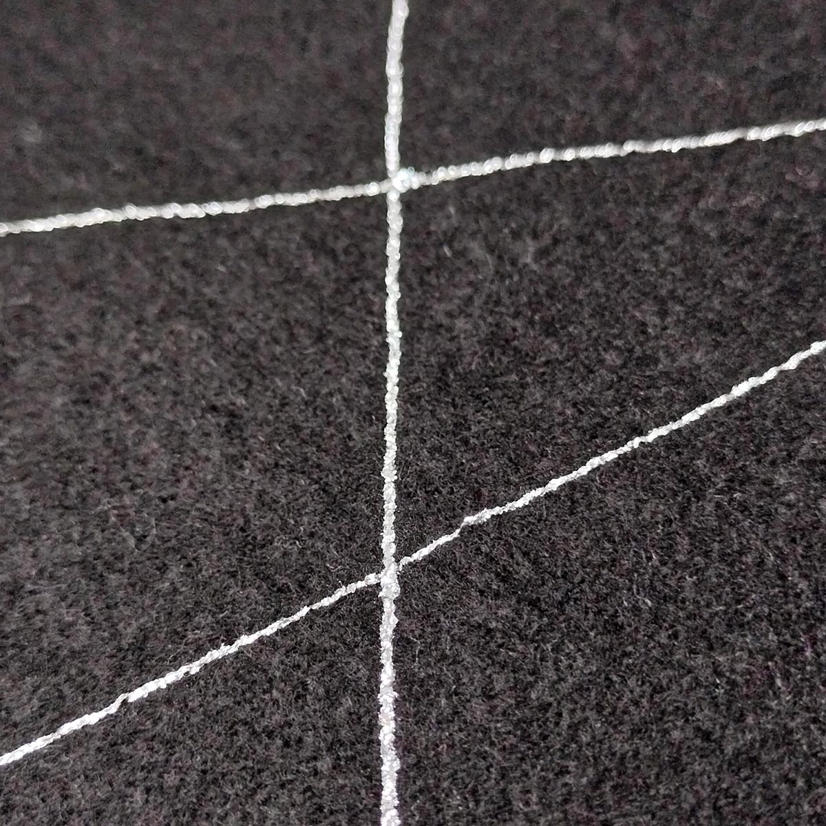 A una de les seves cares hi ha traços pintats a mà alçada, executats amb pintura especial per a llana en tons negre silver. Cada pinzellada hi deixa la seva empremta única, definint formes simples i elegants que reflecteixen l’estil inconfusible de KOKORA.