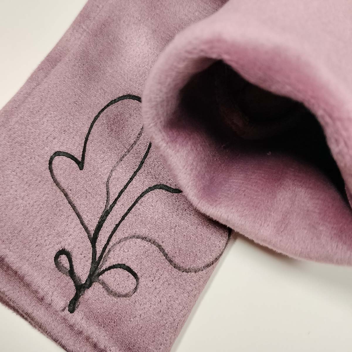 Cada guant és pintat a mà amb pigments tèxtils resistents. Les variacions subtils de color i traç fan que cada peça sigui única, plena de vida i autenticitat.