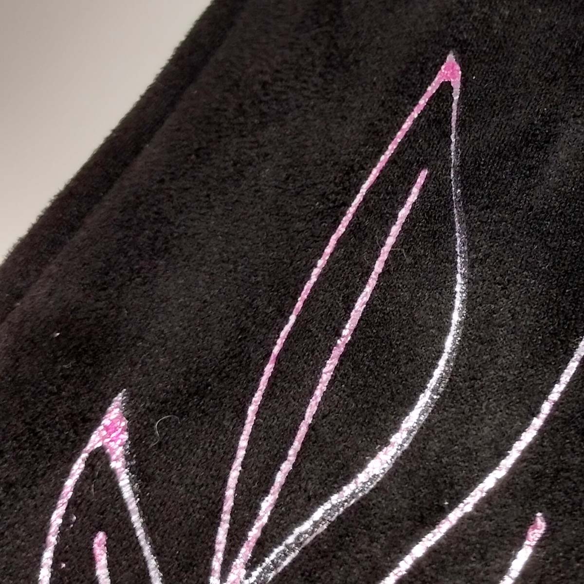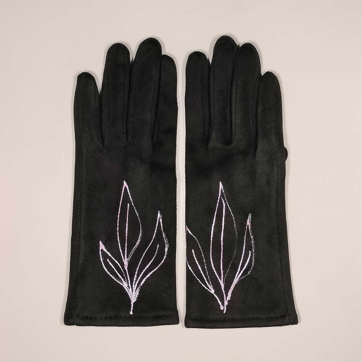 Un contrast ple d’elegància i caràcter. Els guants Trebal en color negre cobren vida amb pinzellades en tons rosats, traços delicats i plens de moviment que evoquen la frescor d’un jardí al capvespre. Cada parell és pintat a mà, fent de cada peça una expressió única i viva del gest artesanal.