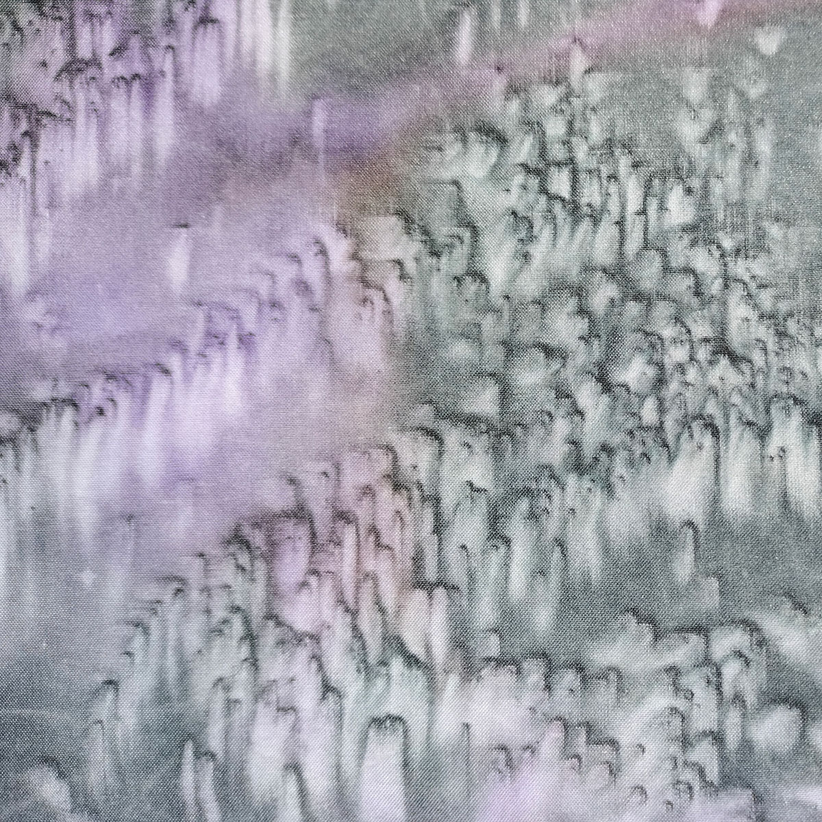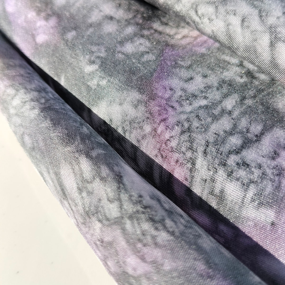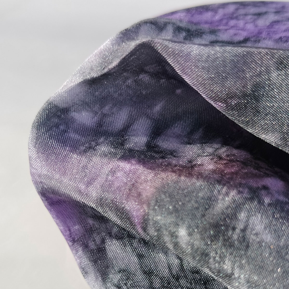 Un mocador que evoca misteri i serenor, com una dansa d’ombres i llum sobre la pell. Els seus tons grisos, liles i negres es fonen amb subtilesa creant aigües que flueixen com un pensament profund, revelant una bellesa intrigant i elegant.