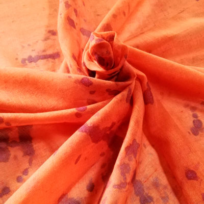 Mocador lleuger i suau, ideal tant per protegir el coll en dies freds com per cobrir les espatlles les nits d’estiu. Pintat i/o estampat a mà amb tintes ecològiques sobre cotó i viscosa, cada peça és única i plena de caràcter.