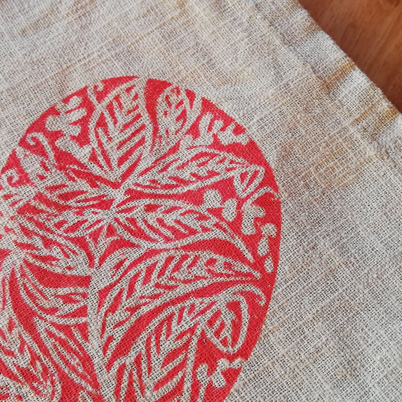 Piezas estampadas a mano de forma totalmente artesanal con tintas ecológicas sobre tejidos orgánicos como el lino y el algodón, con la técnica del Block Carving. Esta técnica utiliza unos moldes que evolucionan en cada estampado y hacen que la pieza sea única, viva y que hable. Nos gusta llamarlo estampado orgánico.